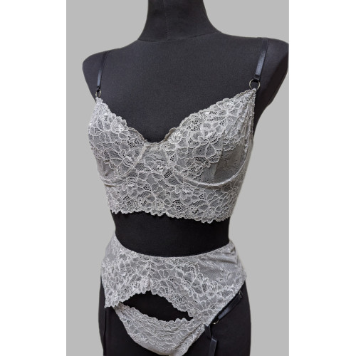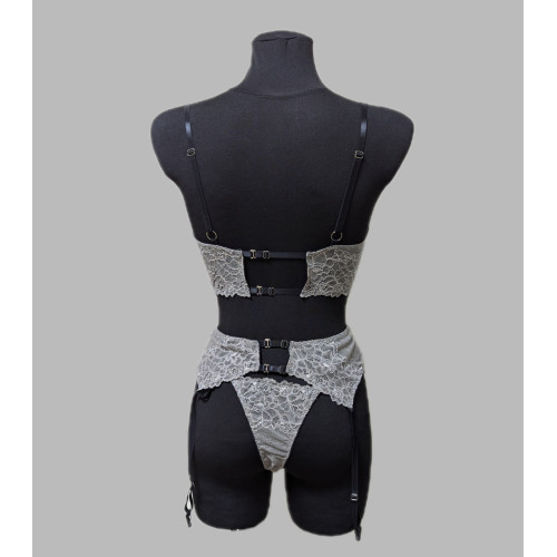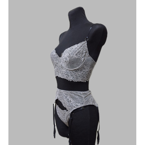 Теги: Комплект кружевного белья белого цвета с гартерами черного цвета на бедра 5442