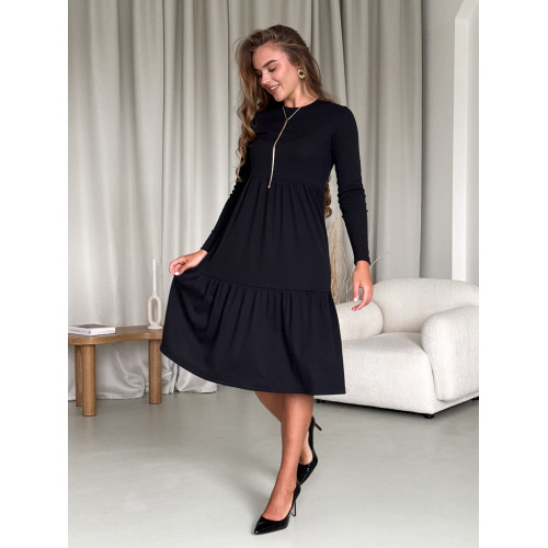 Сукня в рубчик з вільними стегнами, не обтягує.