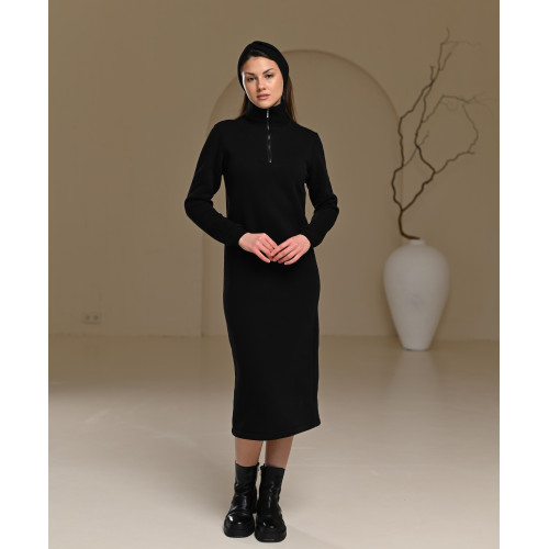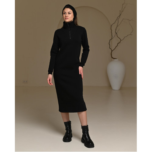 Теги: Теплое платье на флисе на молнии с манжетами чорного цвета, 7001, Все товары