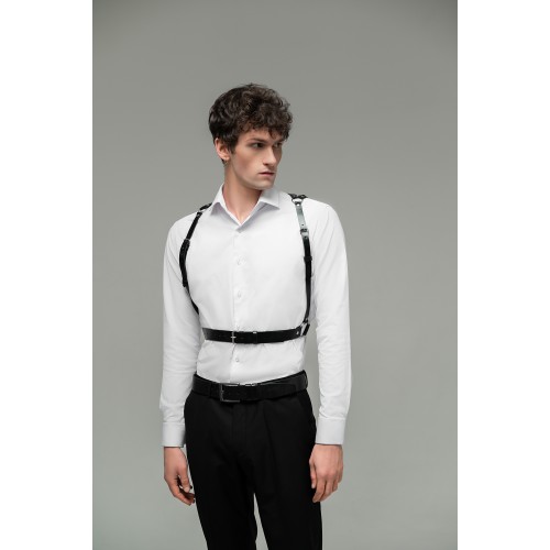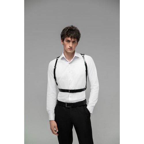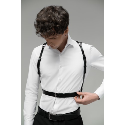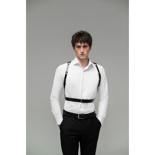 Минималистичная портупея мужская на талию через плечи состоит из тоненьких ремешков, которые надежно фиксируются на талии. Данная портупея имеет минималистичный дизайн, что делает ее универсальной и легко сочетаемой с любым стилем одежды.