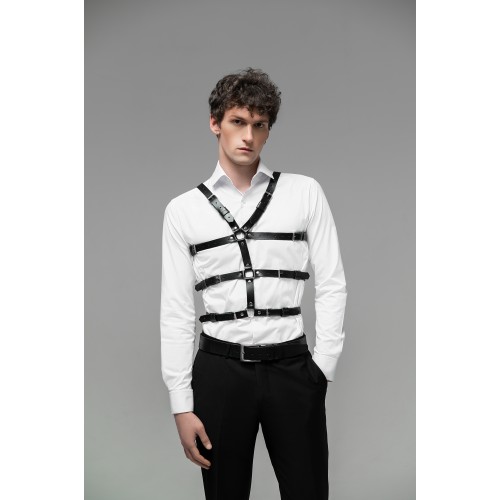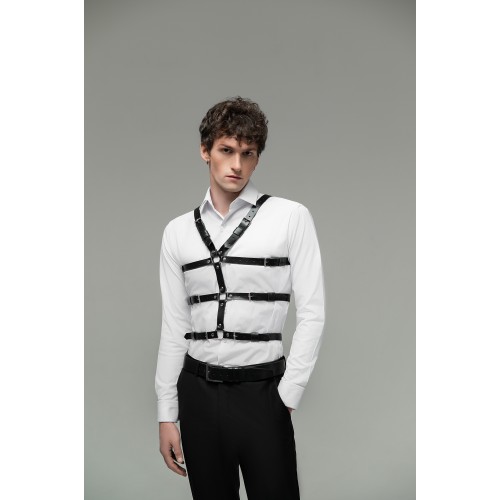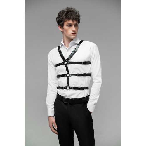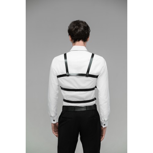Мужская портупея на талию и грудь тройная имеет три ряда ремней которые можно регулировать и подогнать под индивидуальную фигуру пользователя.