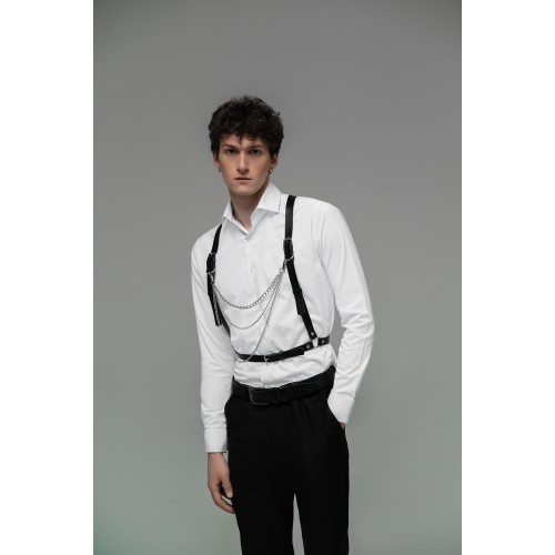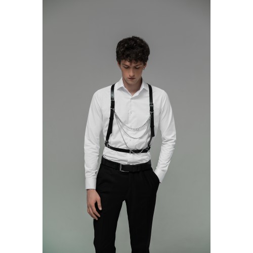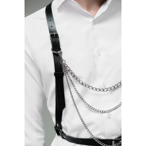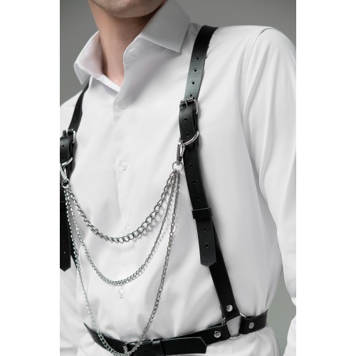 Мужская портупея регулируемая с цепочками регулируемые ремни позволяют легко настроить портупею на нужный размер, обеспечивая комфорт и безопасность во время ношения. Цепочки, прикрепленные к портупее, придают ей стильный вид.