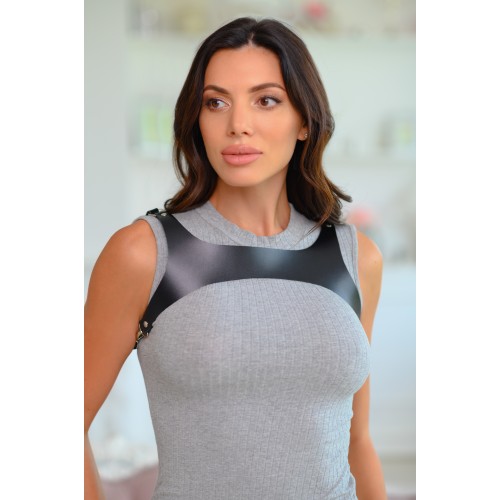 Портупея черная широкая женская на грудь носится на груди и перекрещивается на спине. Ее можно одеть на блузку или платье добавляя образу элегантности и женственности