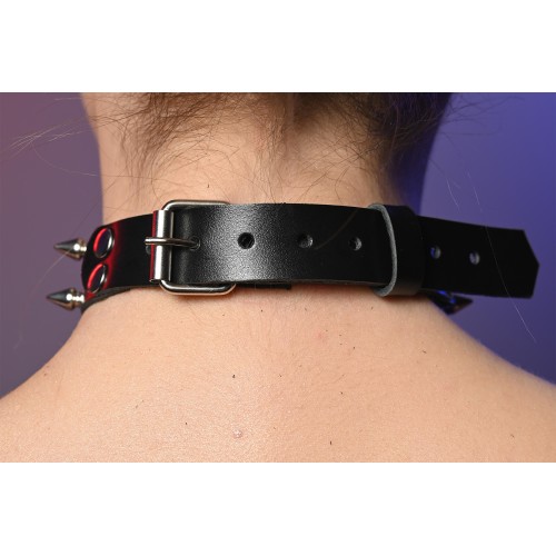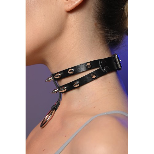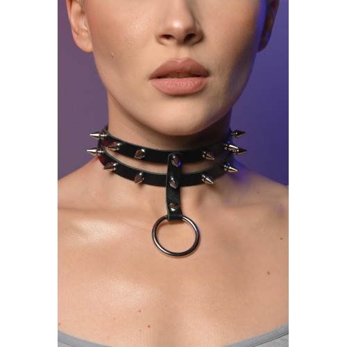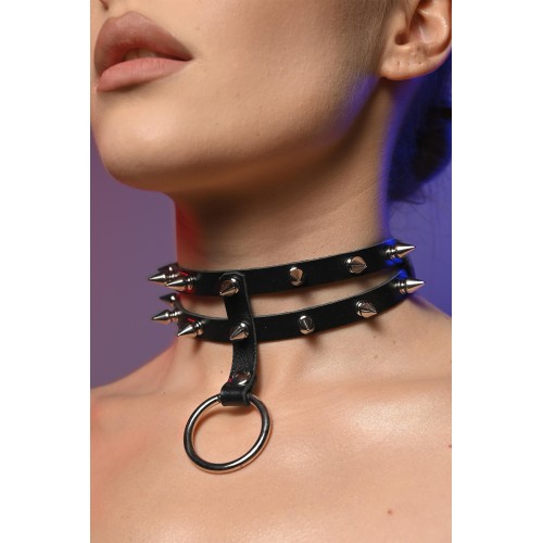 Чокер жіночий з шипами подвійний з кільцем - це стильний та сучасний аксесуар для шиї, який складається з двох ремінців, що охоплюють шию, та прикрашені декоративними шипами.
