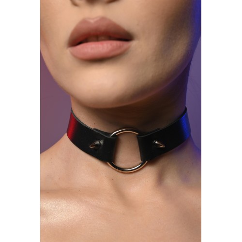 Чокер жіночий з шипами з великим кільцем є відмінним доповненням до стильного образу, він може бути використаний як вечірній аксесуар або в повсякденному житті