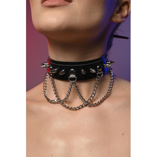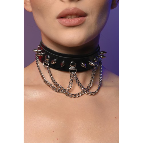 Чокер жіночий з шипами та ланцюжками легко комбінувати з іншими прикрасами та одягом. Він додасть вашому вбранню стильного акценту та може бути ідеальним вибором для вечірніх виходів або важливих подій.