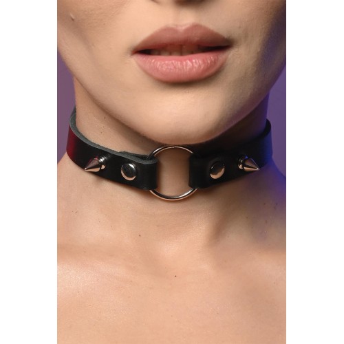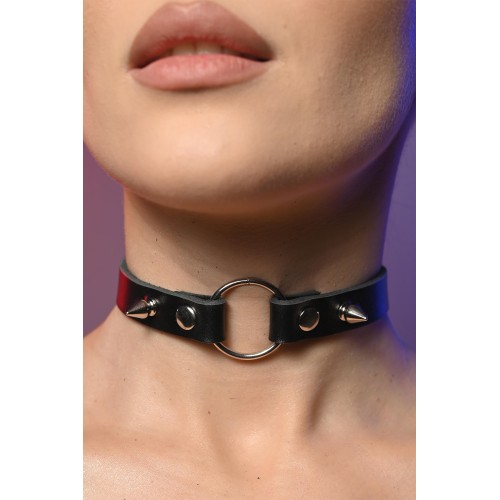 Чокер жіночий з шипами та кільцем - це стильний та вражаючий аксесуар для шиї, який додасть вашому образу сміливості та елегантності.