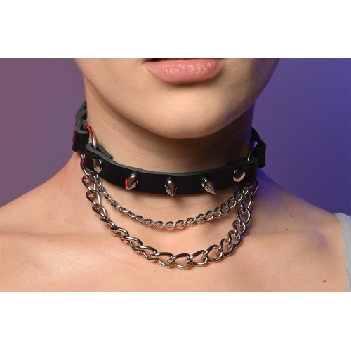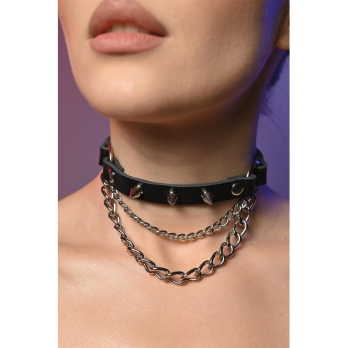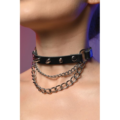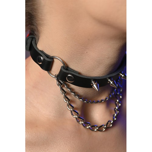 Чокер жіночий з шипами та ланцюжками, чорний колір цього чокера додає йому елегантності та універсальності. Цей чокер можна носити з різними вбраннями, від повсякденних до вечірніх образів. Його можна комбінувати з іншими прикрасами, такими як сережки або браслети, щоб створити повний образ.