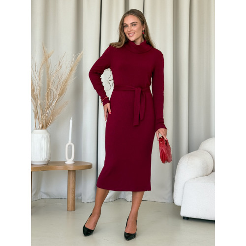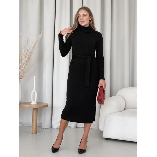 Сукня- светр з ангори з пояском та бічним розрізом. Сукня з довгим рукавом не обтягує та приховує недоліки фігури.